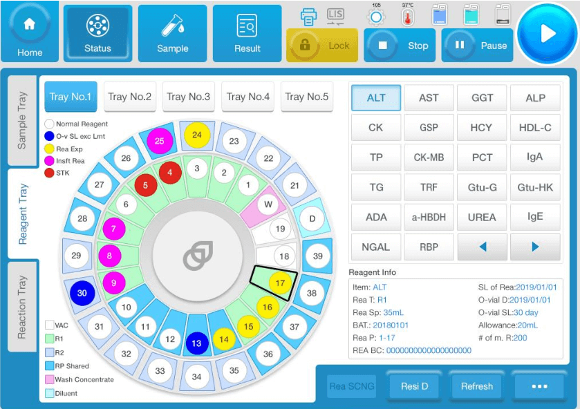 Система поддерживает анализ почти 100 различных аналитов, что расширяет спектр исследований и делает прибор универсальным выбором для диагностики. Анализатор оснащен 40 позициями для образцов и 40 позициями для реагентов, что обеспечивает гибкость в организации работы и удобство при смене реагентов.