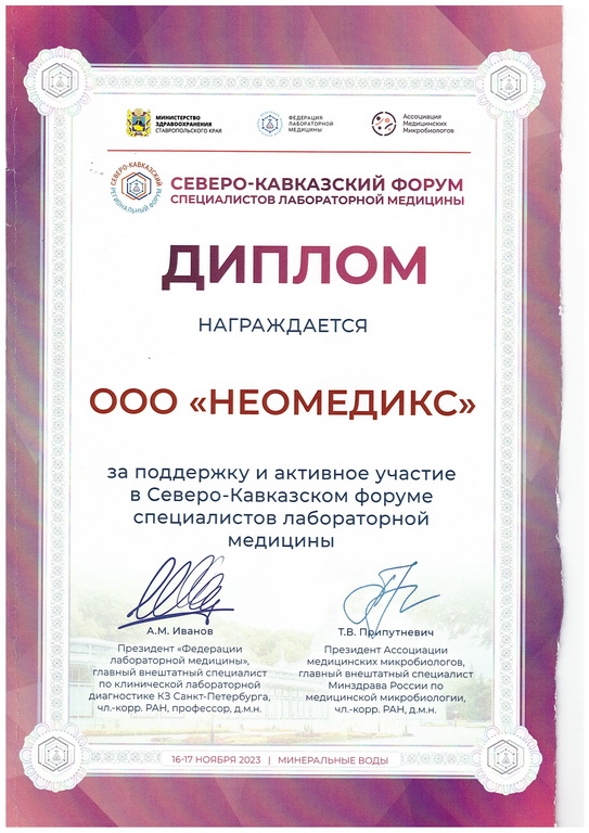 ГК «НЕОМЕДИКС» разработана программа кредитных поставок постоянным клиентам и осуществляется инвестирование в ряд проектов по внедрению в практику российского здравоохранения инновационных технологий мировой лабораторной диагностики.